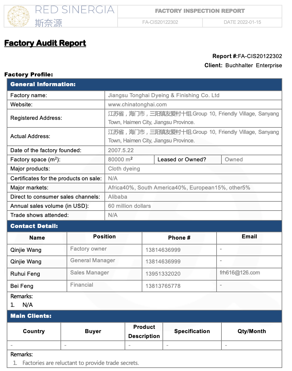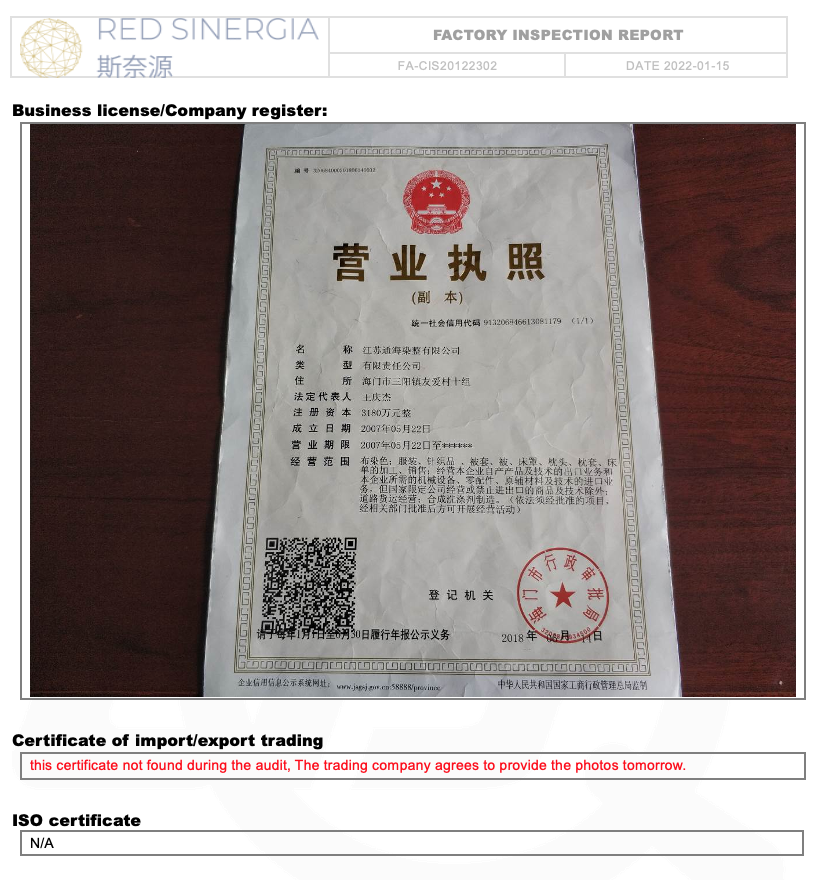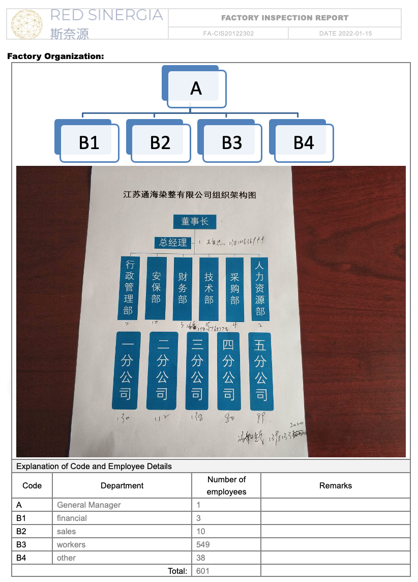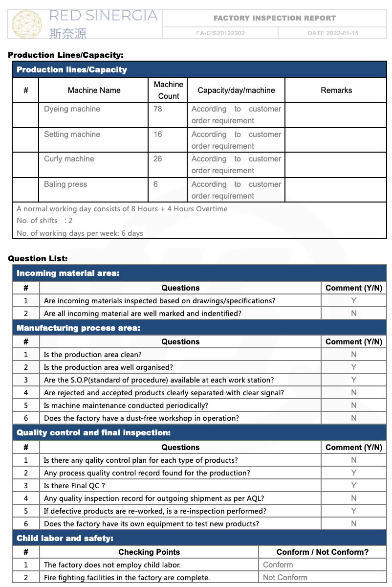 La estructura del reporte de inspección de proveedor/fábrica es la siguiente: